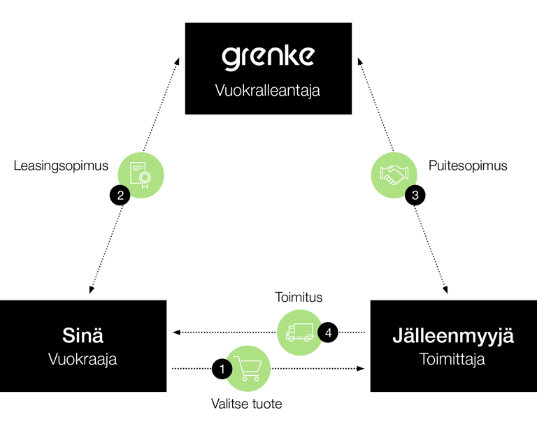 Hanki tarvitsemasi työväline tai laite grenken valikoidulta yhteistyökumppanilta Classic Lease -sopimuksella. Saat tuotteen heti käyttöösi, ja maksat kiinteä vuokraa valitsemasi leasingajan.